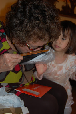 We spent the first part of the weekend in Michigan visiting Nana & Papa! Lucy chased their cats around (poor kitties...rather, poor Daddy), we got to see Taryn (and Ang & Rob), we ate, we went to Lansing to see Mommy's extended family, and...we opened presents!