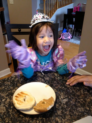 She was a little reserved during the birthday song. She's not shy, but when all eyes are on her, I think she gets nervous. It was endearing.